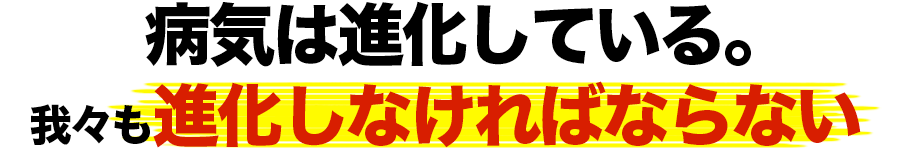 病気は常に進化しています。ですから、これらの病気の進化に対応するために、われわれ治療家も過去の常識を捨て進化しなければいけません。