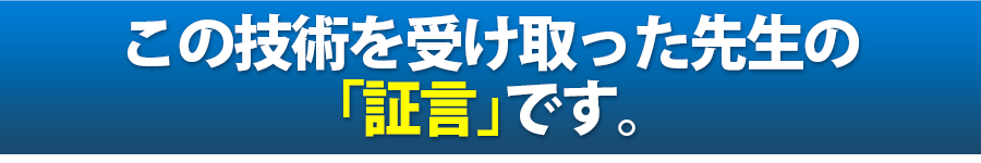 先ほどお見せした成功事例は全て実際の人物であり、他の団体が行ってるような適当な推薦や嘘りの告知などは一切ありません。成功する治療家に必要なのは、「結果に繋がる情報」と「結果が出せる技術」です。
