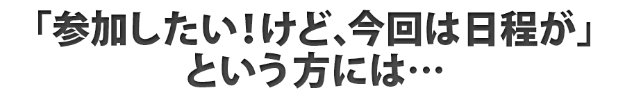 どうしても参加が難しい、遠方なので動画配信があれば、倍の参加費払ってでも見たい、など色々あると思いますので、下にあるフォームに「別日程希望」で登録して、情報を受け取れるようにすることをおすすめします。